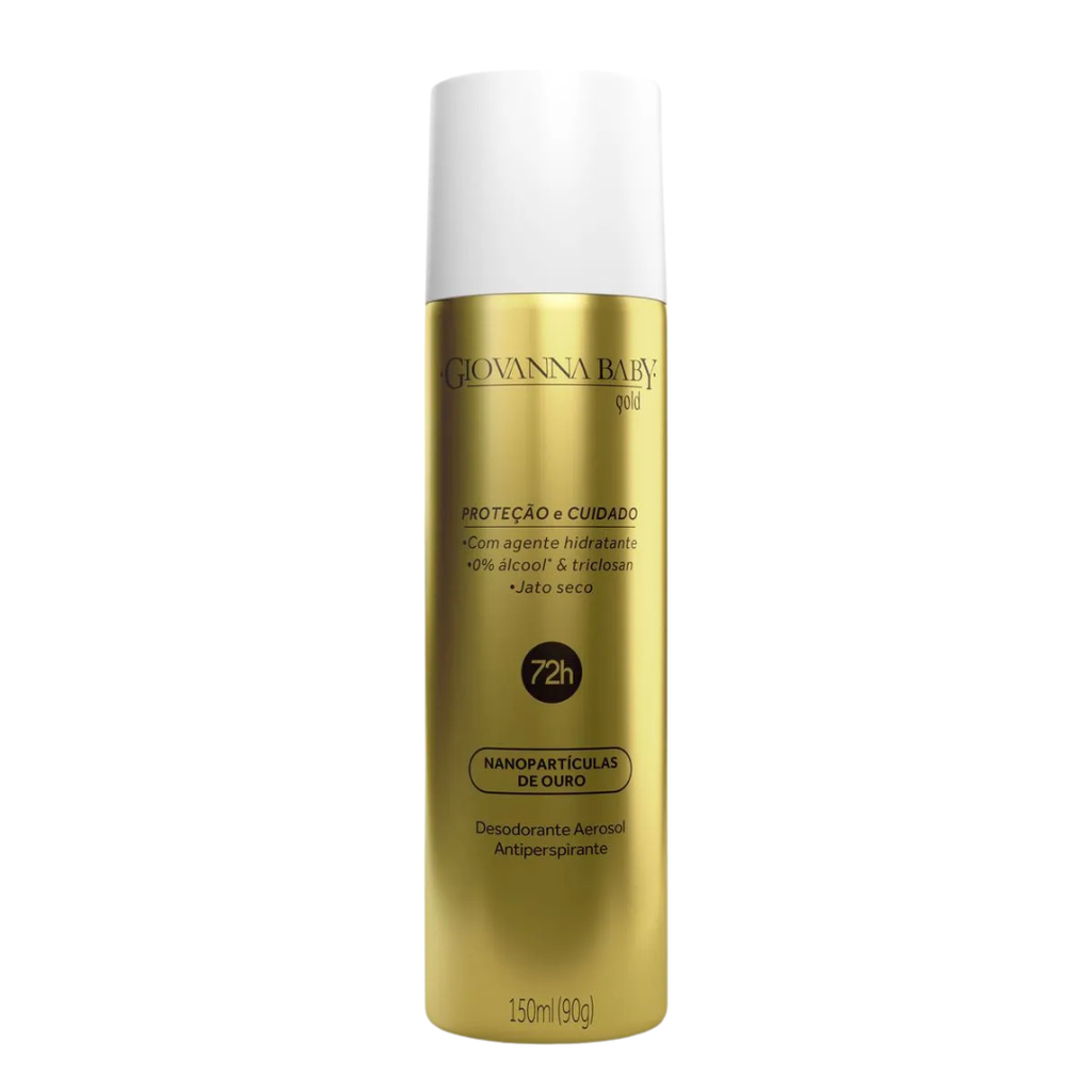 Em síntese, o Giovanna Baby Gold aerosol une longa duração (72h), tecnologia avançada, fragrância sofisticada e cuidado com a pele, oferecendo alto desempenho em formato prático de 150 ml.