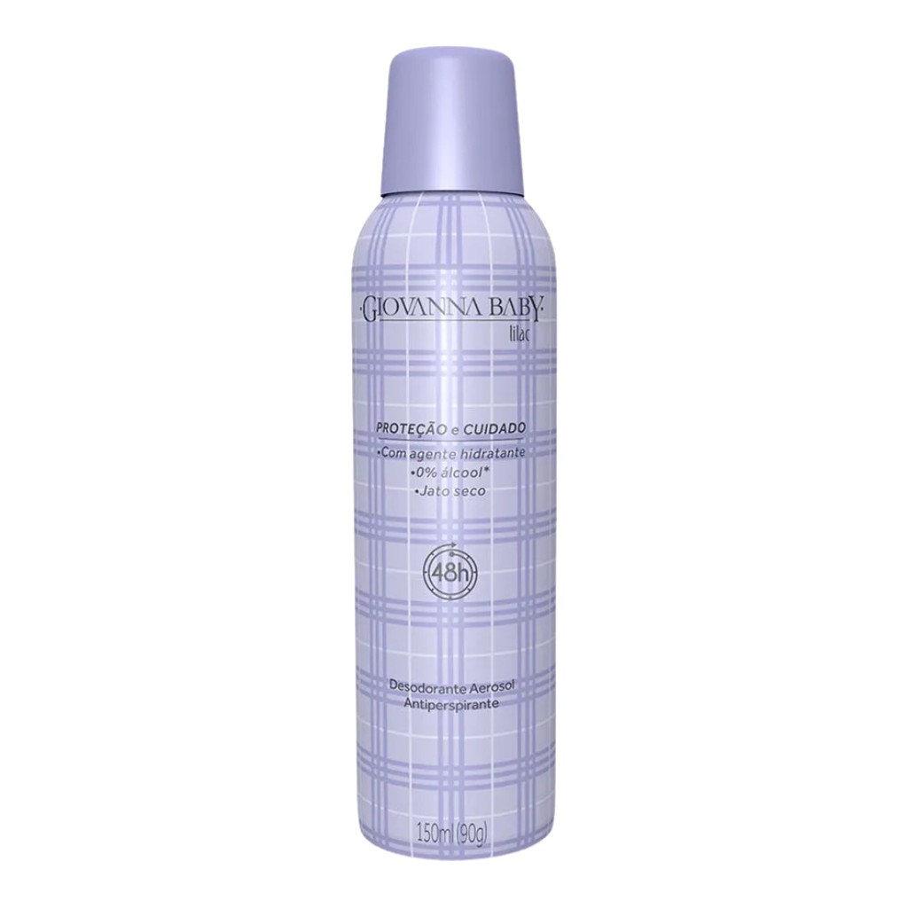 O Desodorante Aerosol Giovanna Baby Lilac 150 ml oferece até 72 horas de proteção antitranspirante eficaz, com ação contra odores da transpiração graças ao cloridrato de alumínio presente em sua composição . Apresenta toque seco e rápida absorção, proporcionando uma sensação de frescor sem resíduos ou aparência pegajosa .